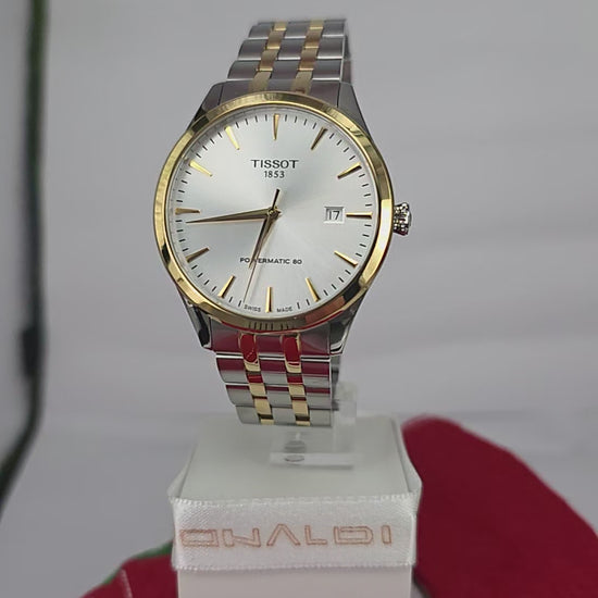 Scopri l'eleganza senza tempo di questo orologio Tissot automatico da uomo, un capolavoro di ingegneria svizzera che unisce tradizione e modernità. Il design bicolore, caratterizzato da linee essenziali e raffinate, si adatta perfettamente a ogni occasione, dal contesto professionale alle serate più formali. Il movimento automatico garantisce precisione affidabile e rappresenta il cuore pulsante di un orologio costruito per durare nel tempo. La cassa bicolore combina l'eleganza dell'acciaio con i riflessi caldi del placcato oro, creando un contrasto sofisticato che cattura lo sguardo. Perfetto per chi apprezza la qualità costruttiva e la semplicità estetica, questo Tissot è un investimento in stile e affidabilità che accompagnerà i tuoi momenti più importanti.