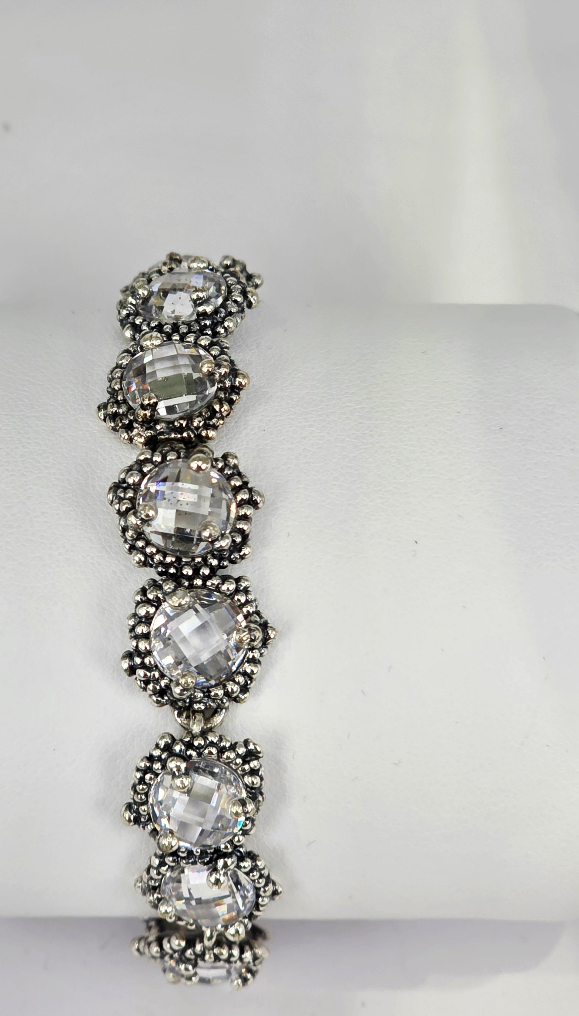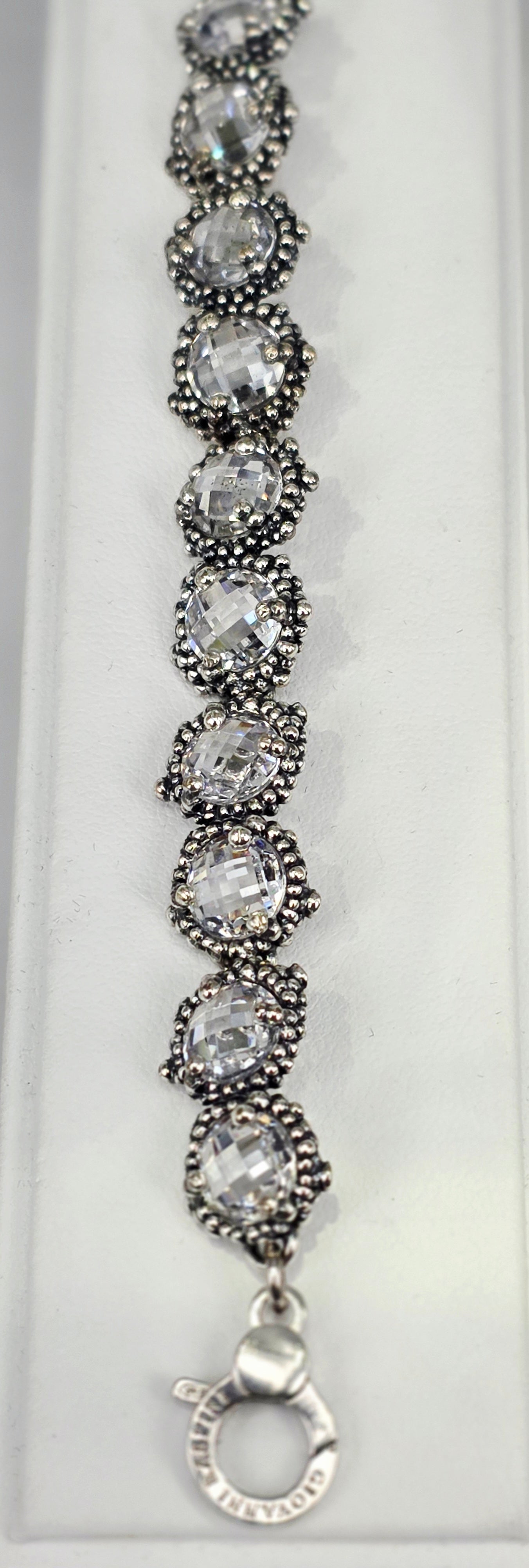 Bracciale in argento della collezione Shine, un capolavoro di artigianalità che combina eleganza senza tempo e brillantezza contemporanea. Ogni pezzo è realizzato con meticolosa lavorazione manuale, impreziosito da pietre di zirconia cubica sapientemente incastonate per catturare la luce con straordinaria luminosità. La qualità dell'argento garantisce durabilità e un finish impeccabile, mentre la zirconia cubica offre quella scintilla di raffinatezza tipica dei gioielli di pregio. Grazie al suo design versatile e alla fattura accurata, questo bracciale si adatta perfettamente a qualsiasi occasione e a tutte le età, rappresentando un investimento in bellezza che resiste nel tempo. Un accessorio che unisce tradizione orafa italiana e design contemporaneo.
