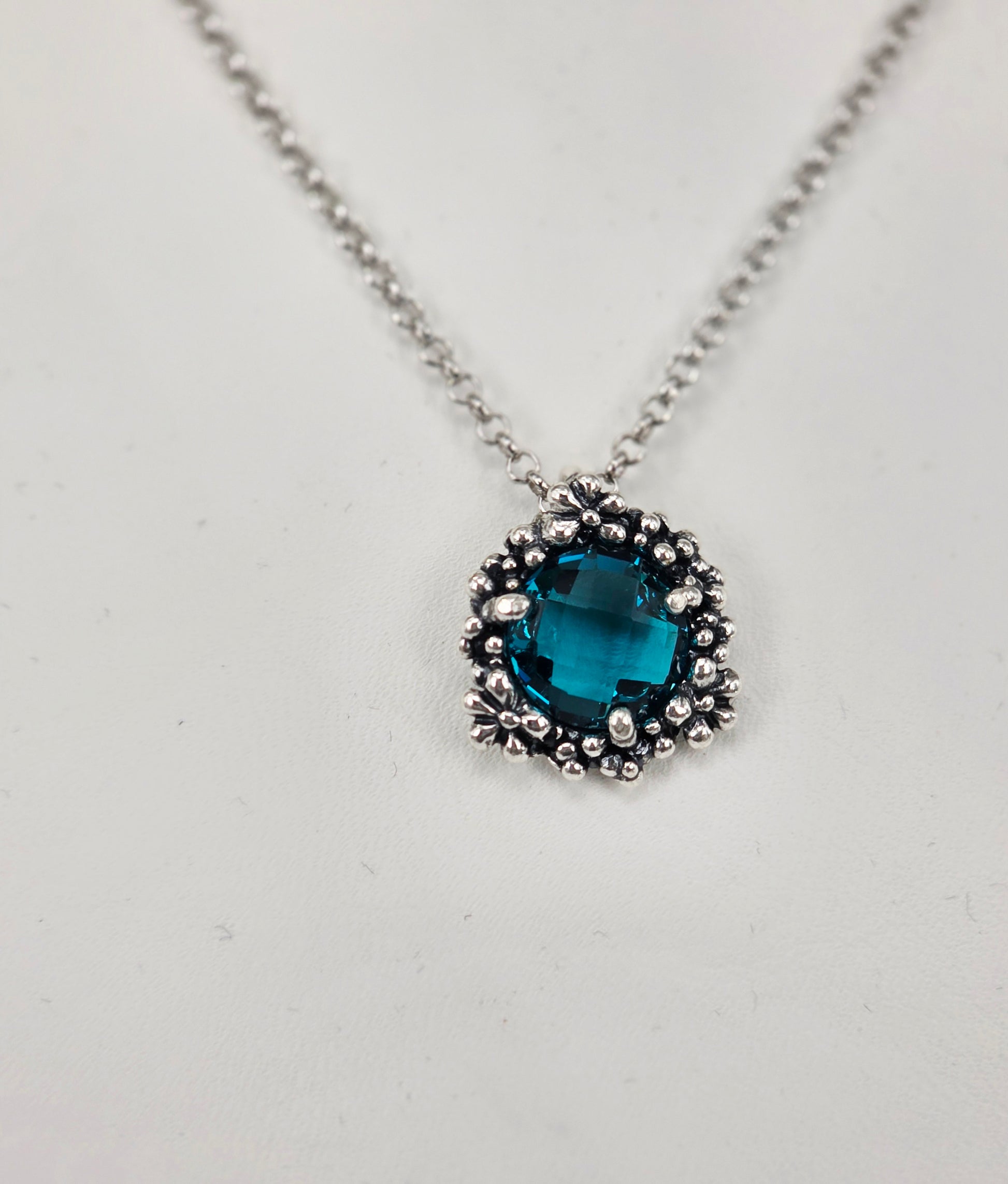 Girocollo in argento della collezione BLUE IVY, un pezzo che incarna l'eleganza sofisticata e l'artigianalità italiana. Al centro della composizione spicca un cristallo azzurro-verde di straordinaria luminosità, sapientemente contornato da una raffinata finitura perlage realizzata interamente a mano. Ogni dettaglio riflette la maestria orafa di Monaldi Gioielli, garantendo una qualità costruttiva superiore. La versatilità del design lo rende adatto a tutte le età, permettendo di indossarlo in molteplici occasioni, dal quotidiano alle serate speciali. Un accessorio che combina bellezza estetica e solidità costruttiva, perfetto per chi apprezza i gioielli che raccontano una storia di tradizione e precisione artigianale.