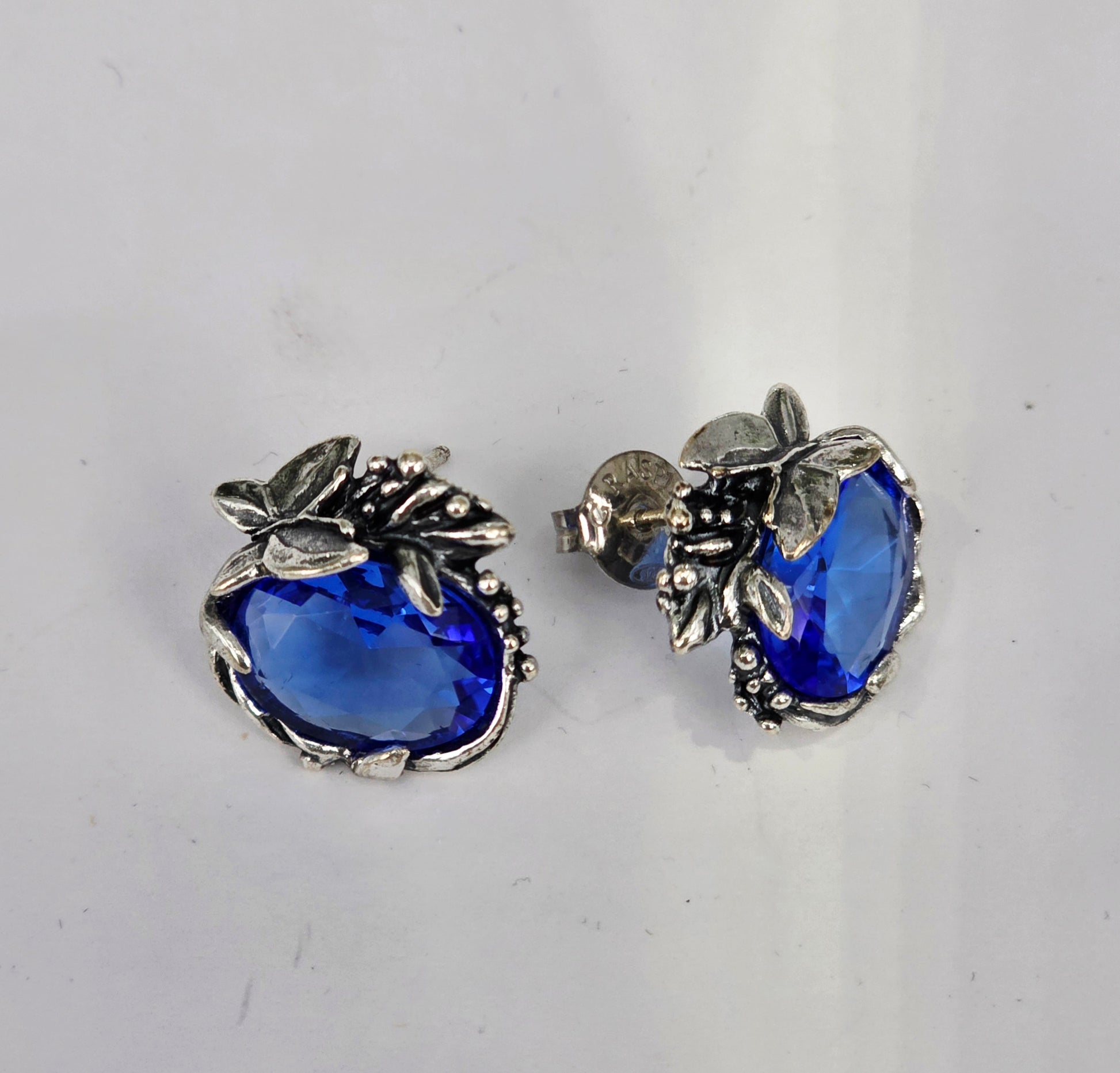 Orecchini in argento 925 con pietra centrale di quarzo dal colore blu zaffiro, circondata da una delicata farfalla in argento realizzata interamente a mano. Ogni pezzo rappresenta un'opera artigianale dove la maestria dell'orefice si esprime attraverso i dettagli raffinati della lavorazione. La combinazione tra la luminosità della pietra naturale e l'eleganza della farfalla crea un accessorio versatile e sofisticato. Adatto a tutte le età, questi orecchini si distinguono per la qualità costruttiva e il design senza tempo, perfetti sia per occasioni speciali che per l'uso quotidiano. Un'aggiunta preziosa a qualsiasi collezione di gioielli.