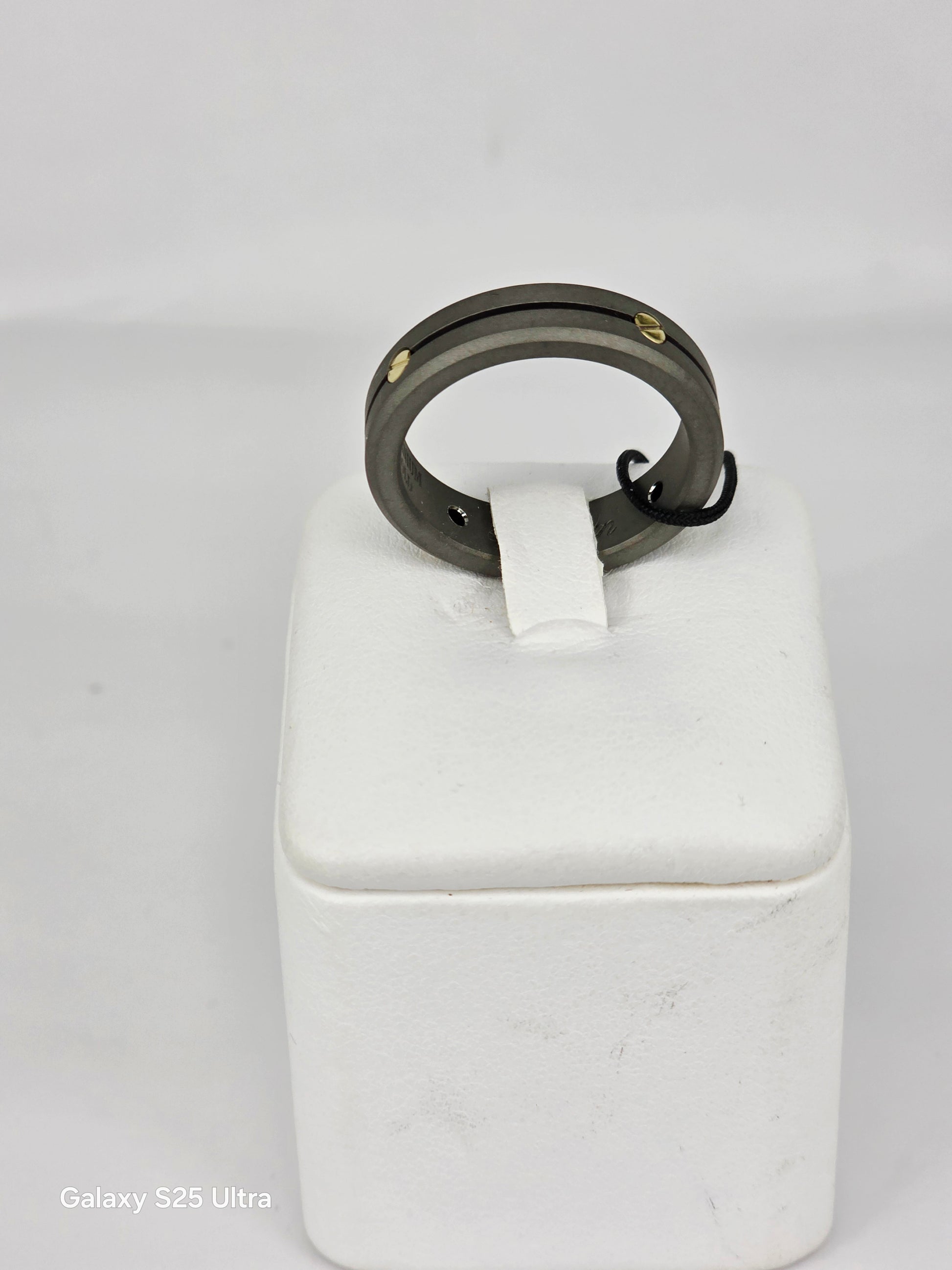 Anello in titanio e oro che unisce eleganza contemporanea e solidità strutturale. Impreziosito da diamanti neri di ct 0.08, questo gioiello rappresenta una scelta sofisticata per chi apprezza il design moderno. La combinazione di titanio, noto per la sua leggerezza e resistenza, con l'oro garantisce un accessorio durevole nel tempo. I diamanti neri conferiscono un carattere deciso e versatile, adatto a completare qualsiasi look, indipendentemente dall'età di chi lo indossa. Un pezzo che racchiude qualità artigianale e materiali nobili, perfetto sia per occasioni speciali che per l'uso quotidiano.